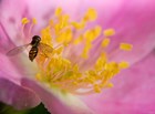 Bee On Pink And Yellow Flower