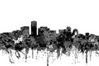 Long Beach California Skyline- Cartoon B&W