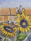 House Sparows with Sunflowers