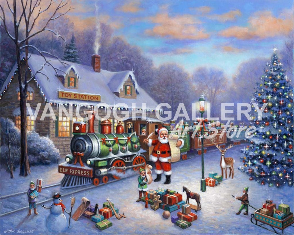 Loading the Elf Express for Christmas by John Zaccheo art print