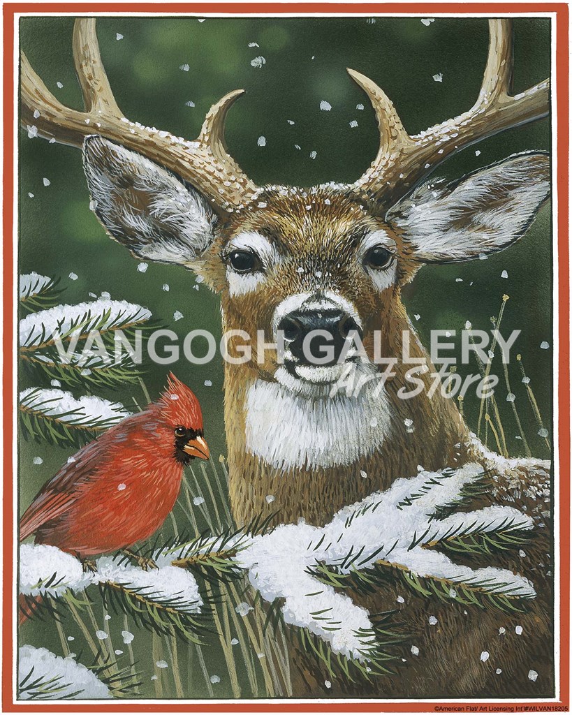 Deer With Cardinal by William Vanderdasson art print