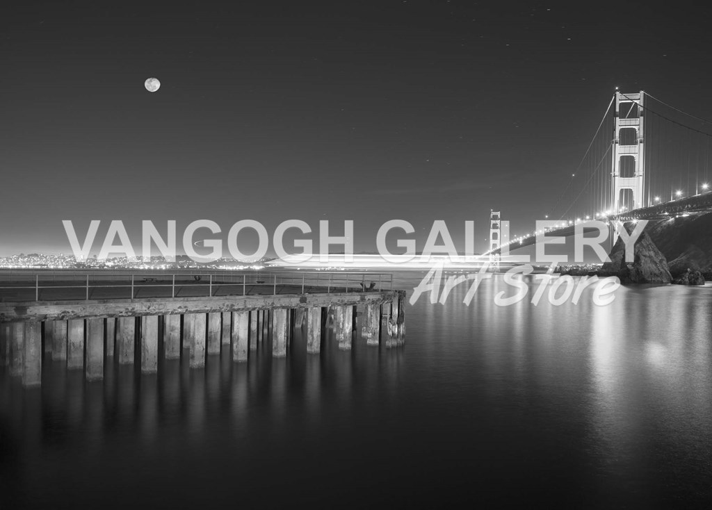 Golden Gate Pier and Stars BW by Moises Levy art print