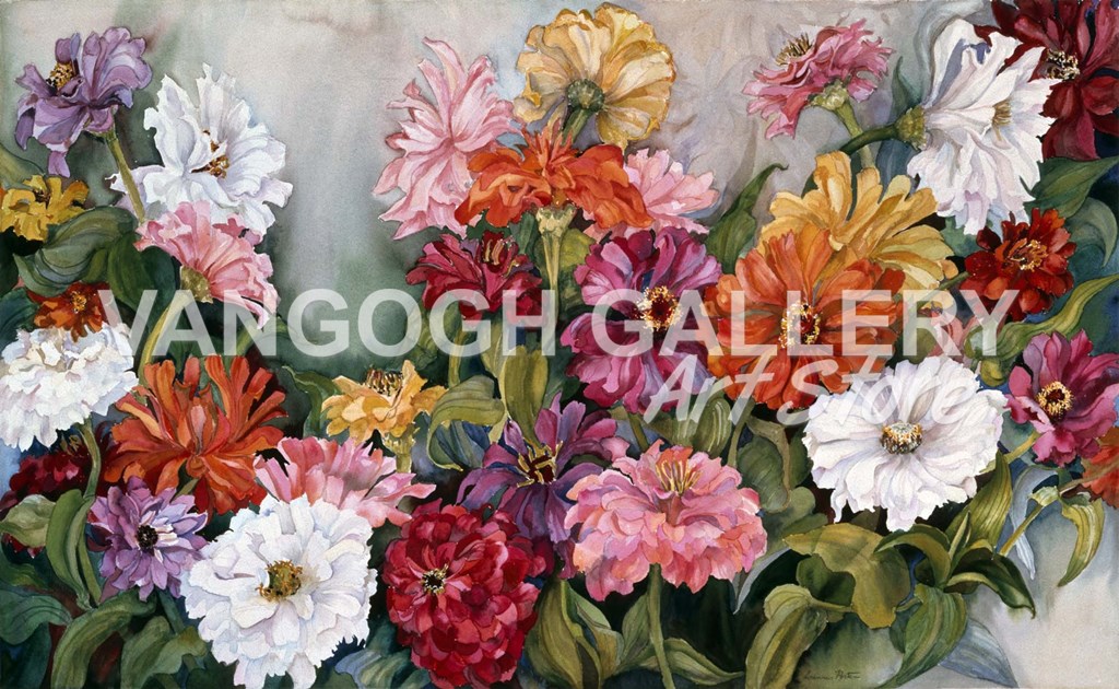 Zinnias by Joanne Porter art print