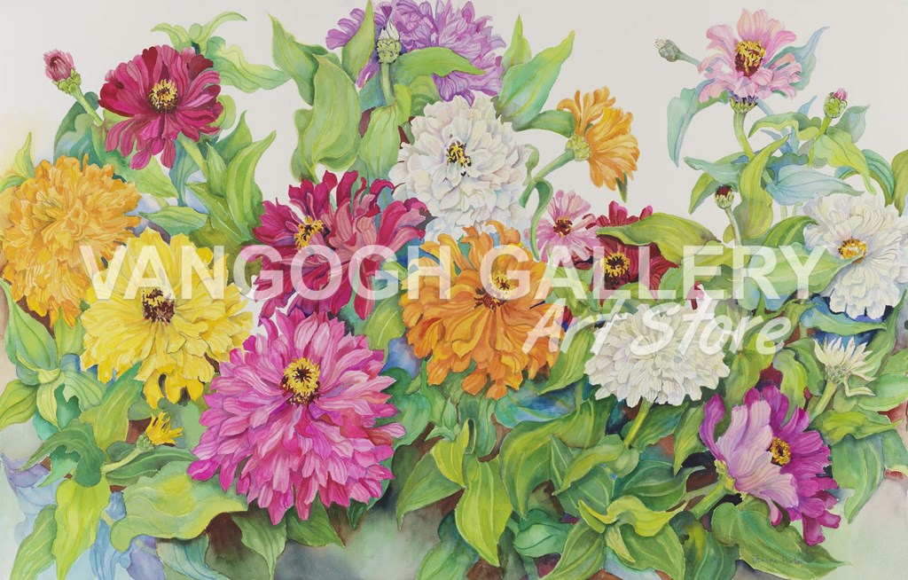 Festive Zinnias by Joanne Porter art print