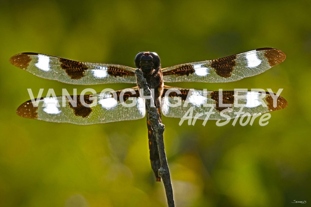Dragonfly With Brown And White On Branch - Gordon Semmens