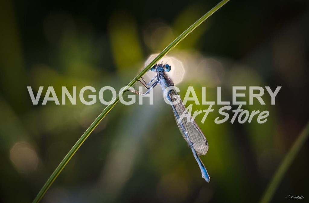 Turquoise Dragonfly On Blade by Gordon Semmens art print