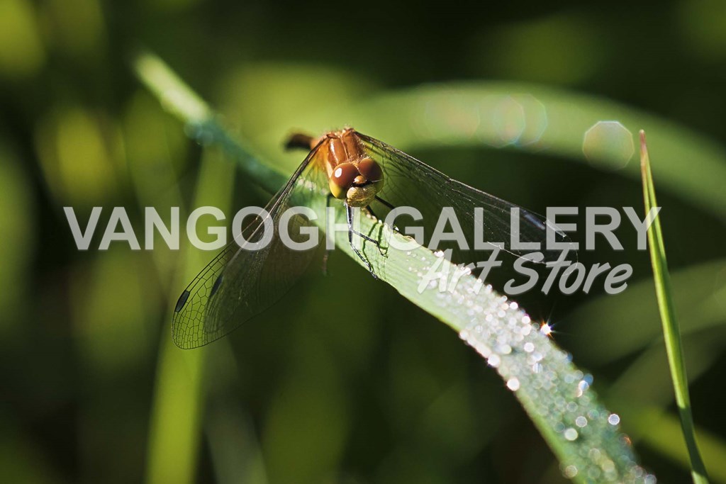 Orange Dragonfly On Green Stem by Gordon Semmens art print