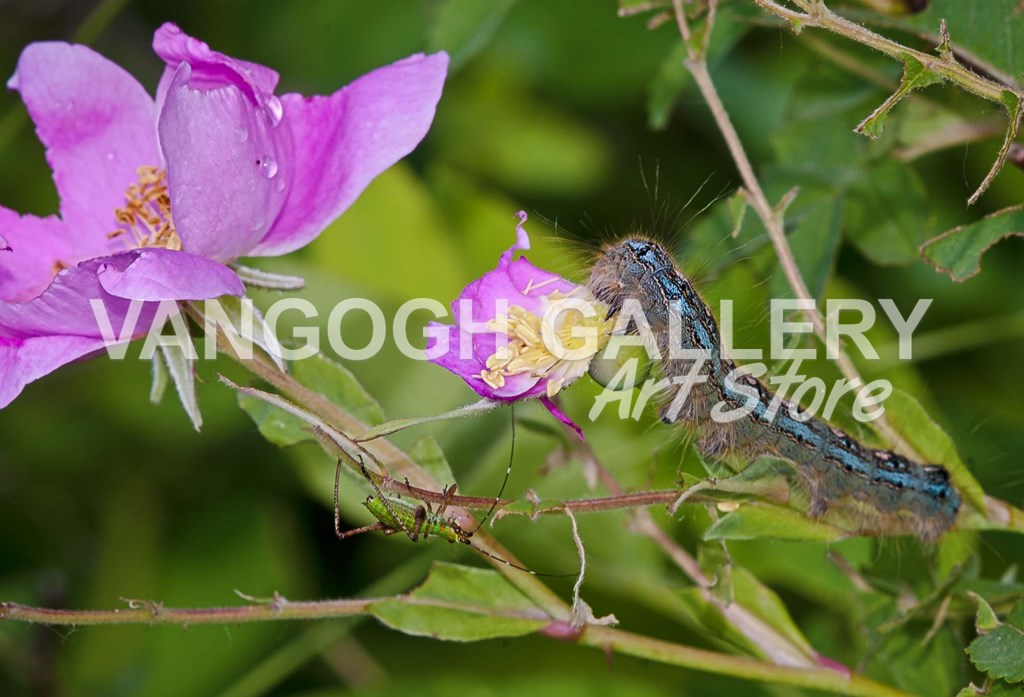 Blue Caterpillar On Magenta Flower - Gordon Semmens