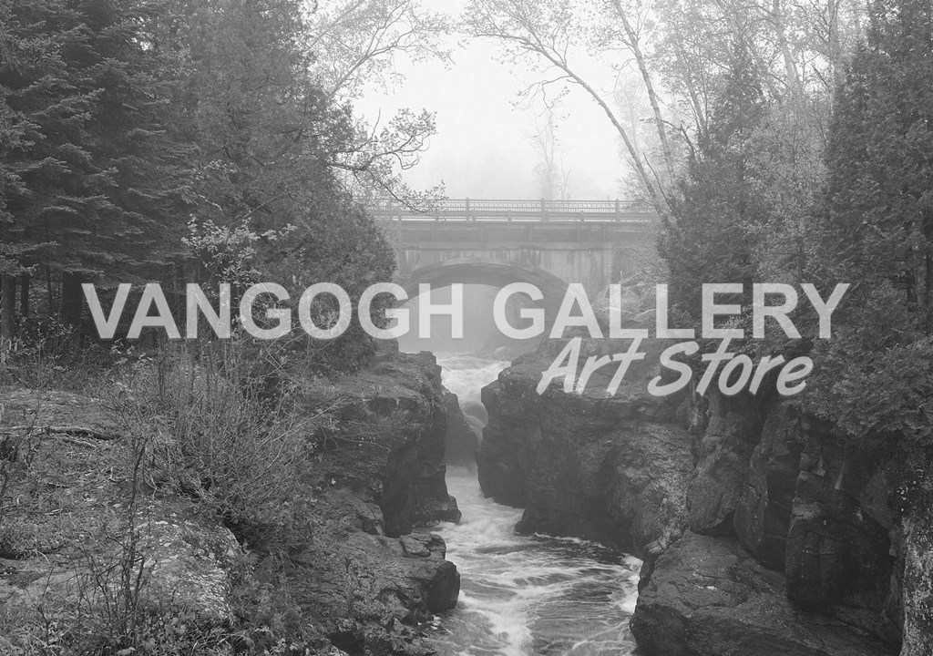 Title: Bridge Over Rocks Black And White