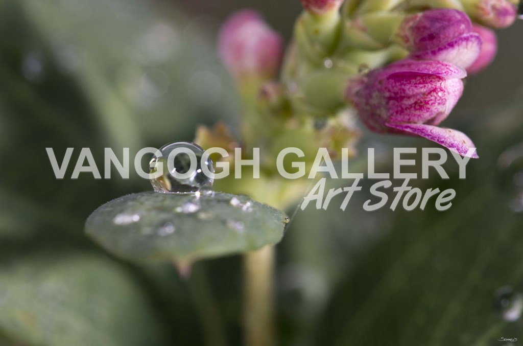 Raindrop And Pink Flower Buds by Gordon Semmens art print