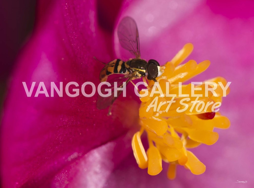 Bee On Pink And Yellow Flower Closeup by Gordon Semmens art print
