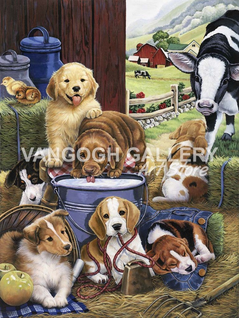 Puppy Hayday by Jenny Newland art print