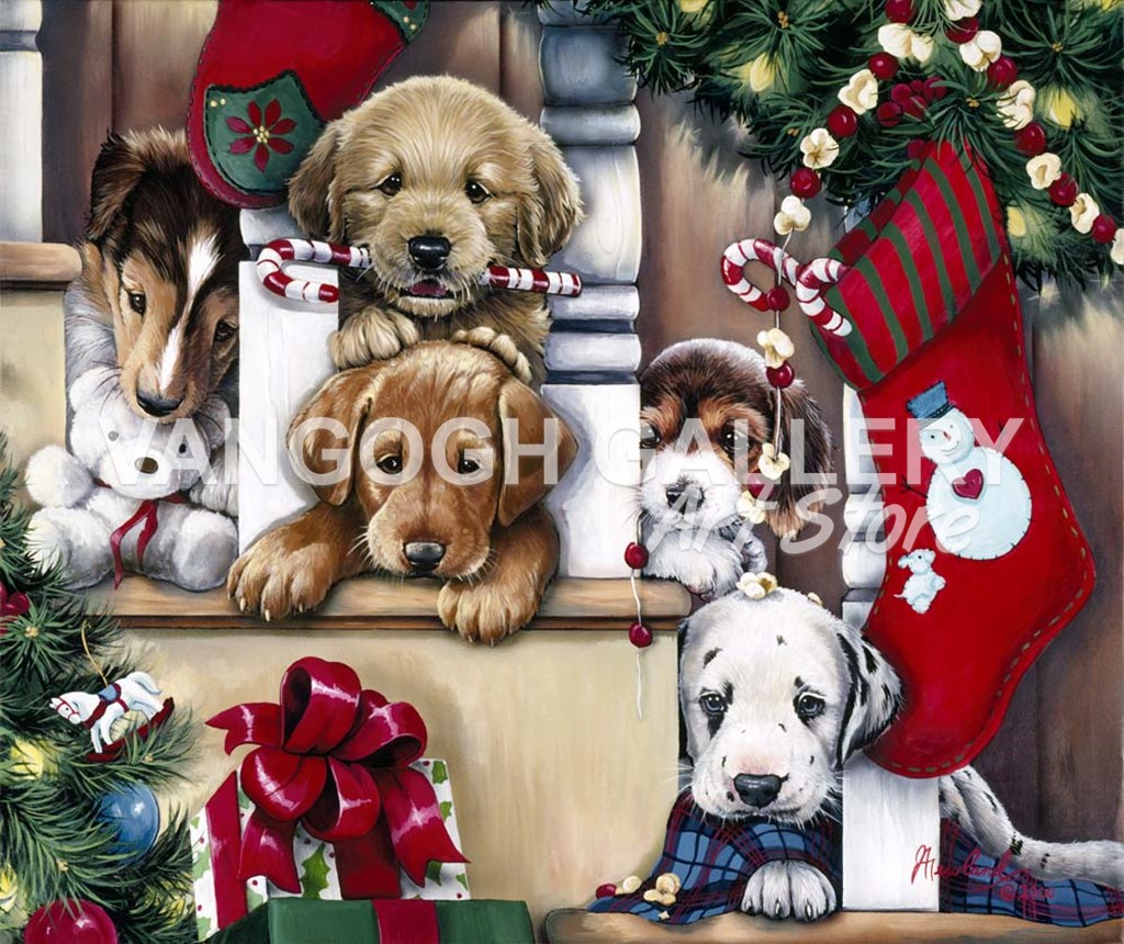 Christmas Puppies On The Loose by Jenny Newland art print