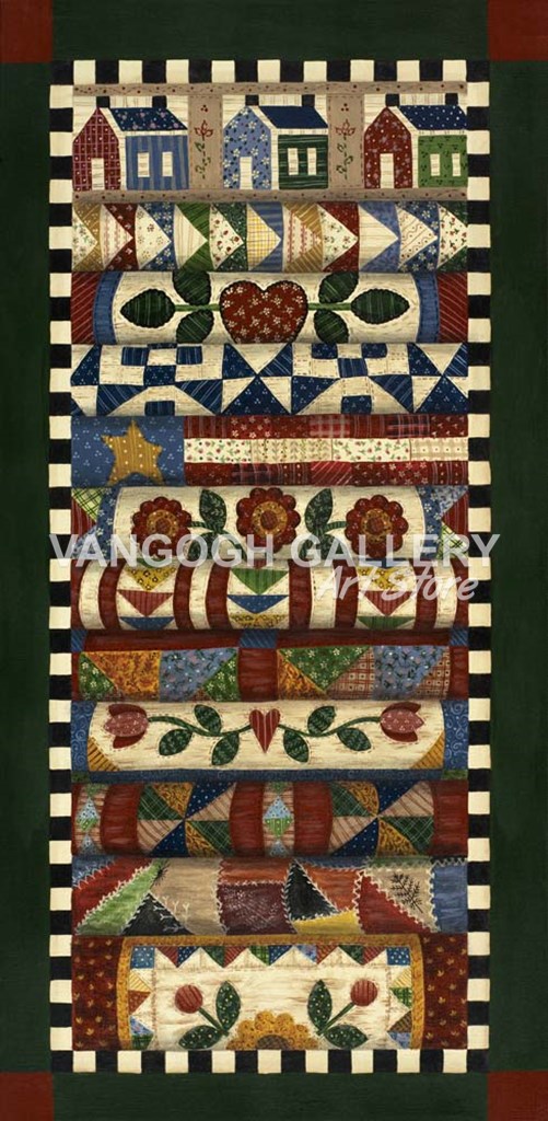 Stack Of Quilts With Dark Green Border 2 by Debbie McMaster art print