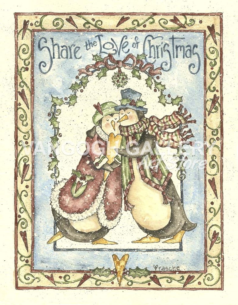 Share The Love Of Christmas Penguins by Shelly Rasche art print