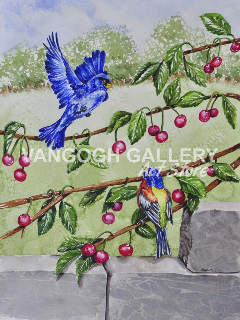 Indigo Bunting and Rainbow Bunting by Charlsie Kelly art print