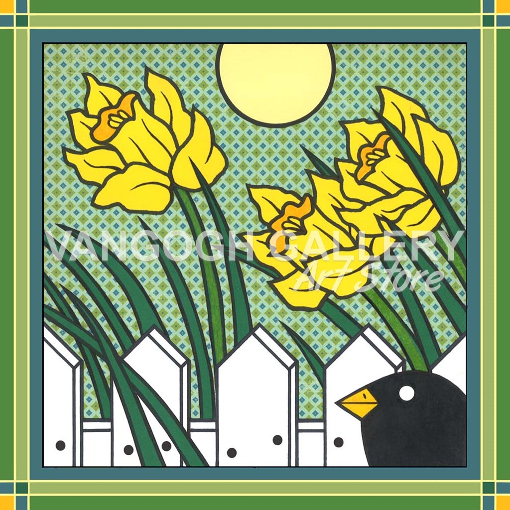 Daffodils 2 With Kernal The Crow by Denny Driver art print