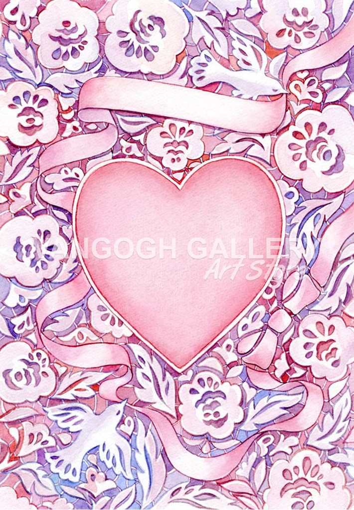 Pink Heart and Lace by Geraldine Aikman art print