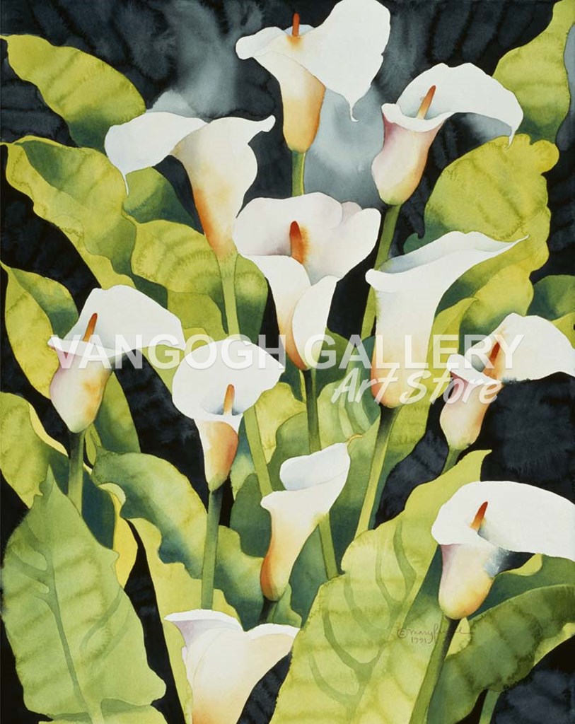 Midnight Callalilies by Mary Russel art print
