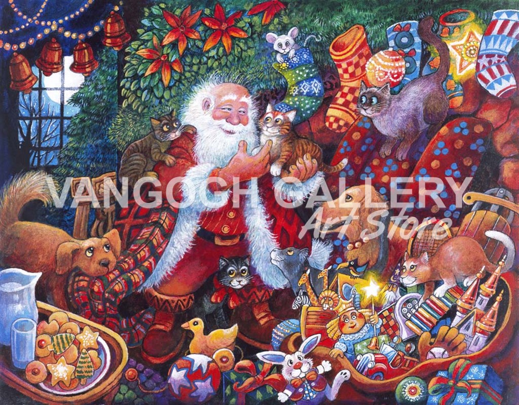 Santa with Pets by Bill Bell art print