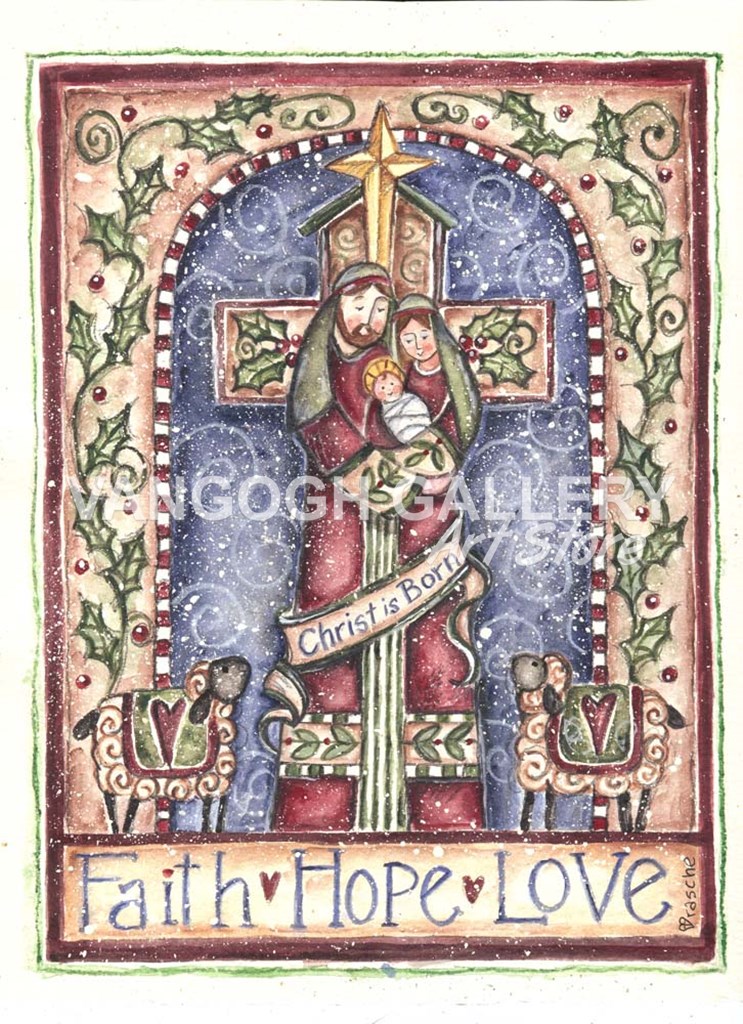 Faith Hope Love Cross Nativity by Shelly Rasche art print