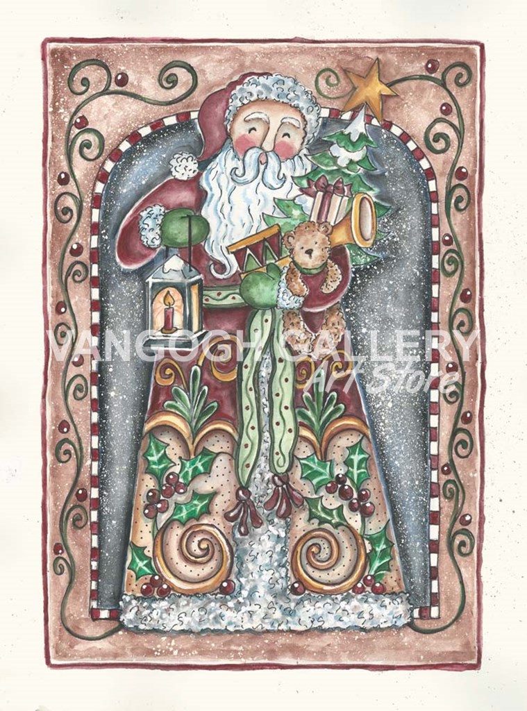 Santa Holding Toys And Lamp by Shelly Rasche art print