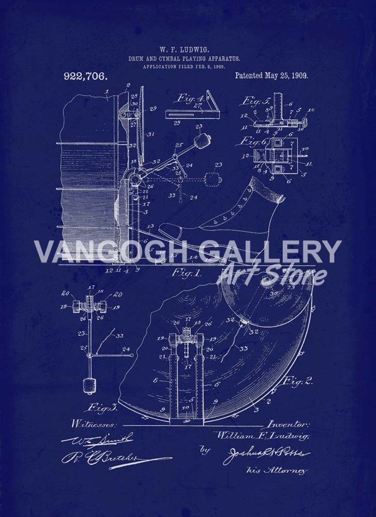 1909 Drum Cymbal Playing Apparatus by Tina Lavoie art print