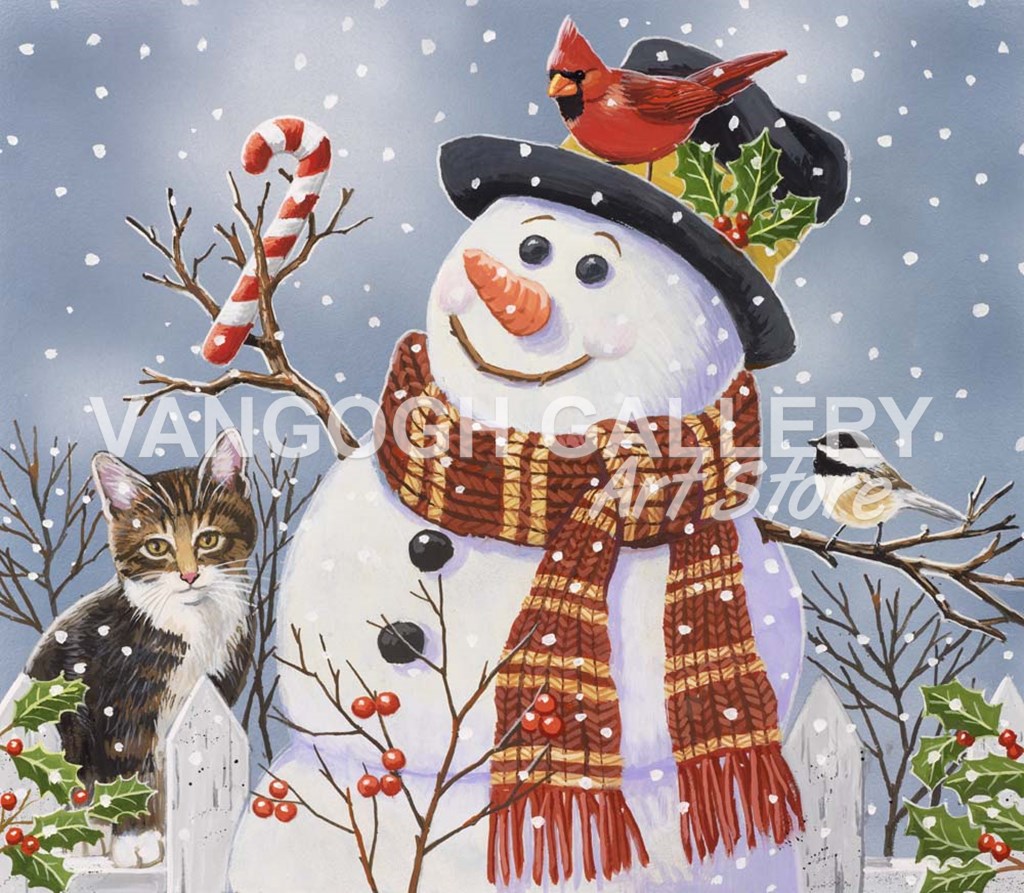 Snowman and Kitten by William Vanderdasson art print