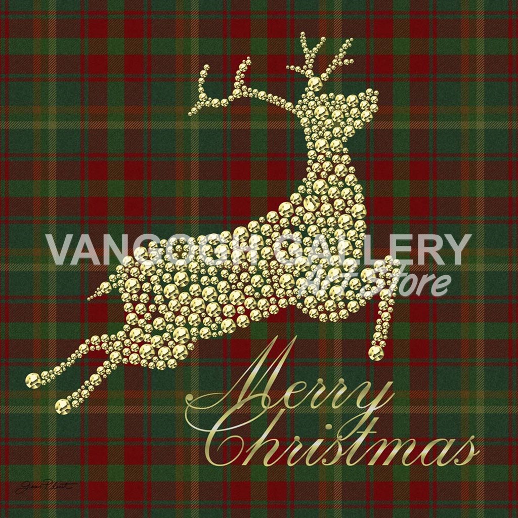 Merry Christmas Plaid - Gold by Jean Plout art print