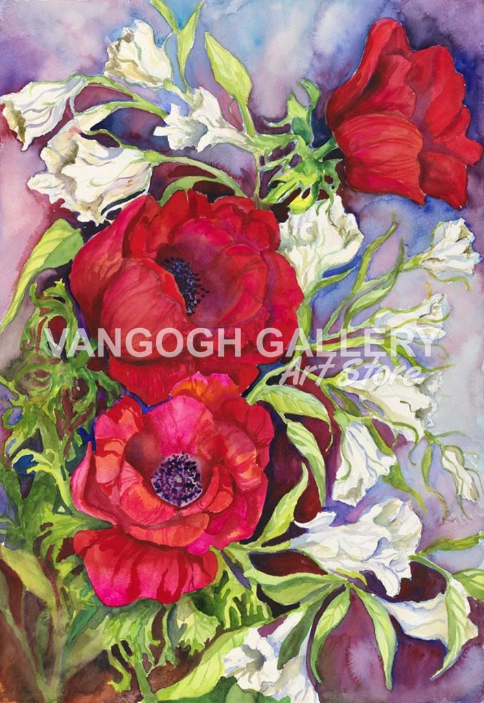 Amenones and Prairie Gentian by Joanne Porter art print