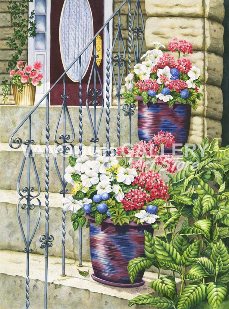 You are viewing a Serigraph print. Fine artists create serigraphs in limited runs by applying layer upon layer of pigment to the print surface by pressing it through a mesh screen containing a stencil. The complex and lengthy process commonly uses inks for pigment and stencils made of a variety of materials. Because of the nature of the process each serigraph is unique.