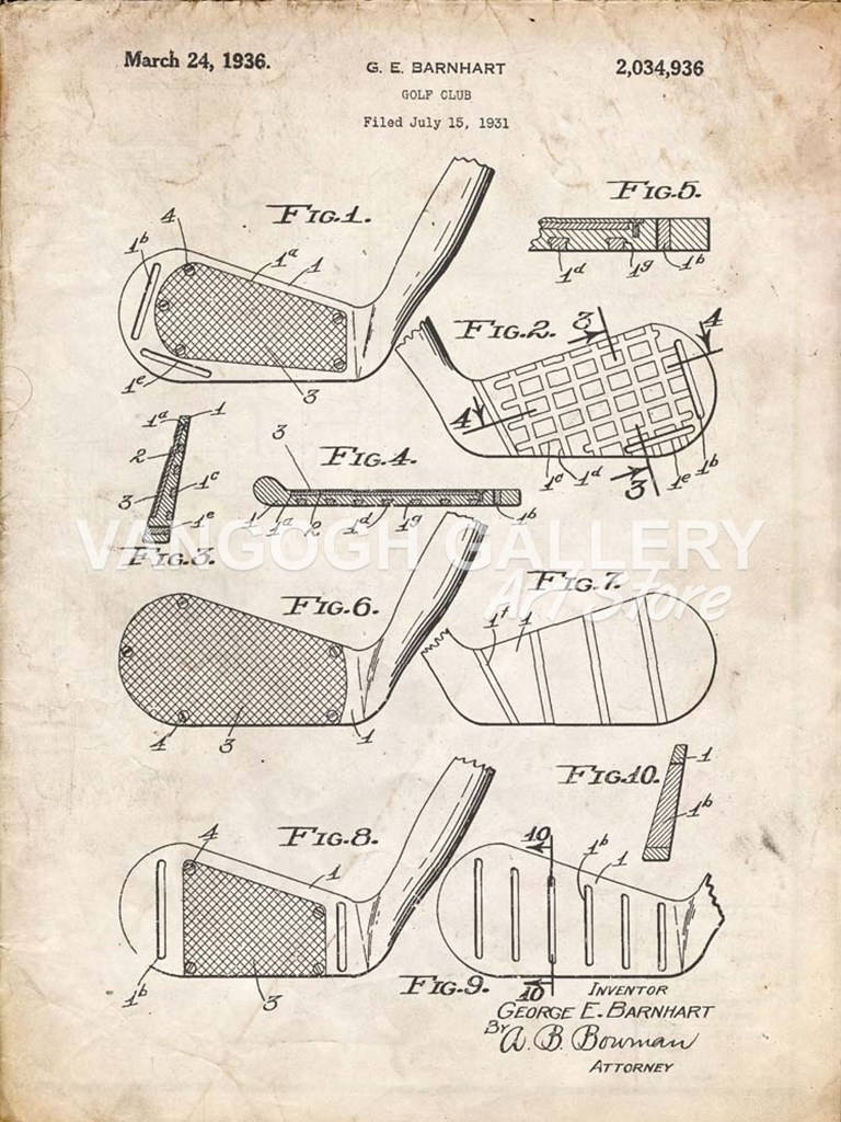Title: Golf Club Patent - Vintage Parchment