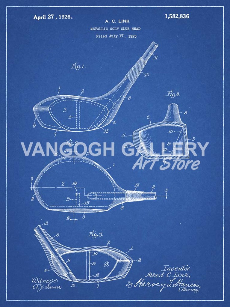 Title: Metallic Golf Club Head Patent - Blueprint