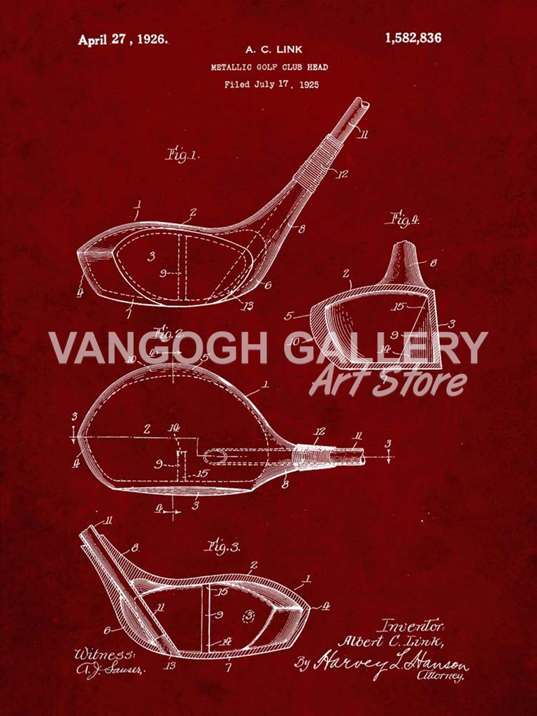 Title: Metallic Golf Club Head Patent - Burgundy