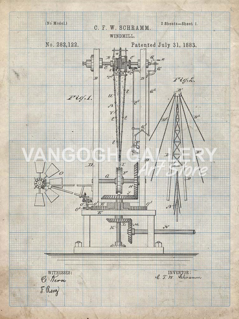 Title: Windmill Patent - Antique Grid Parchment