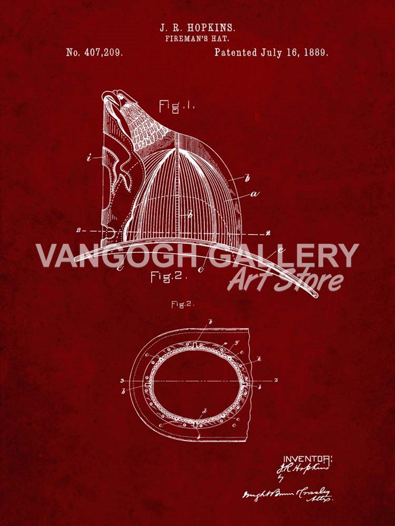 Title: Fireman's Hat Patent - Burgundy