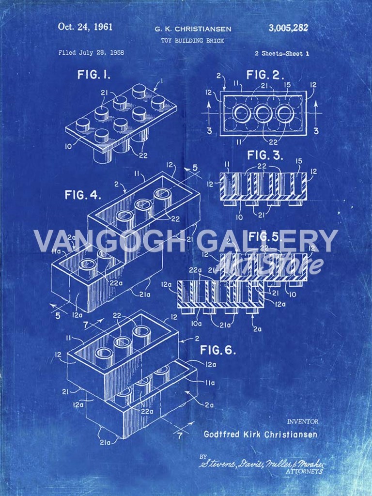 Toy Building Brick Patent - Faded Blueprint - Cole Borders
