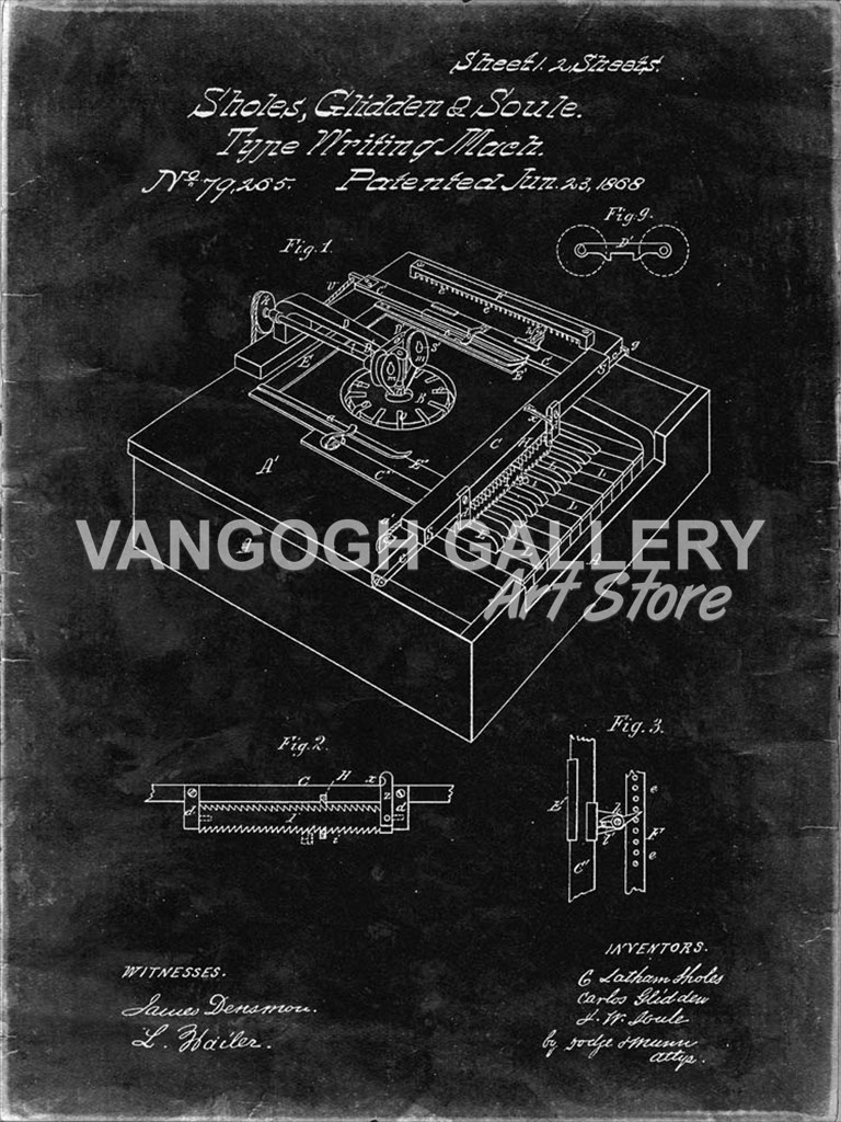Type Writing Machine Patent - Black Grunge - Cole Borders