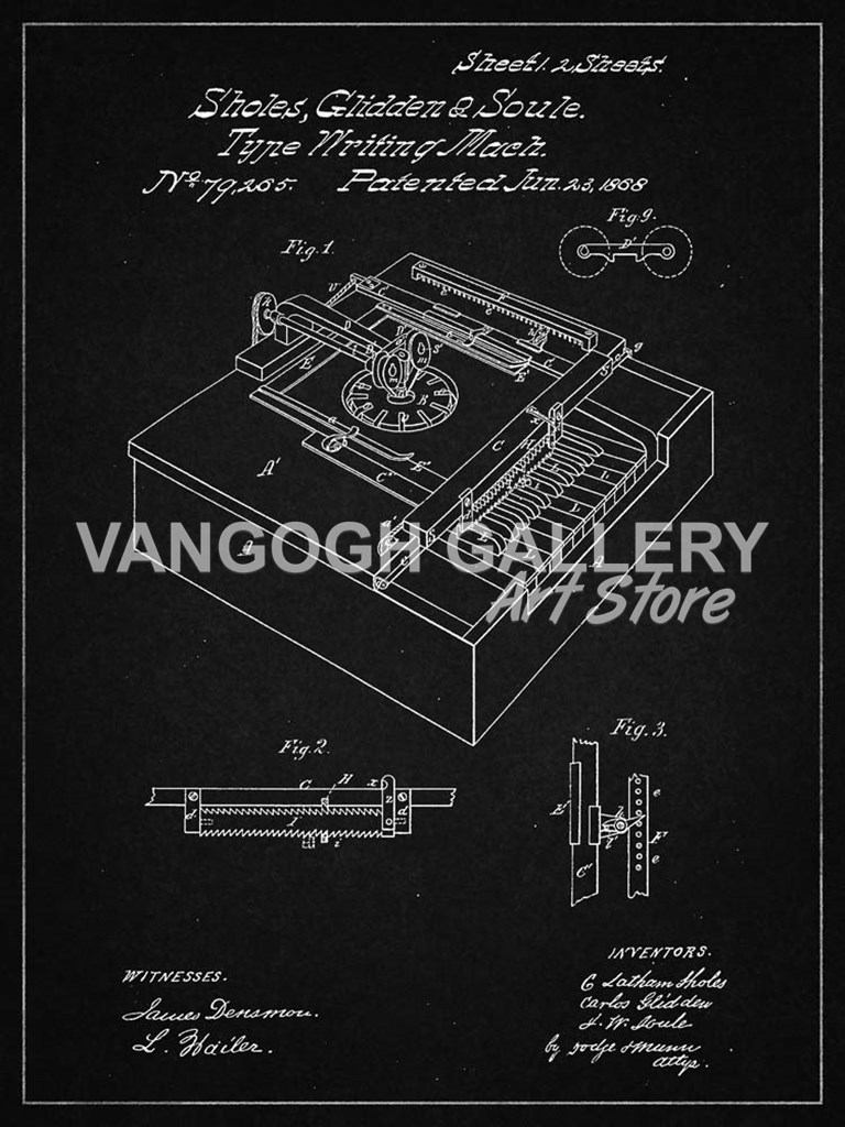 Type Writing Machine Patent - Vintage Black - Cole Borders
