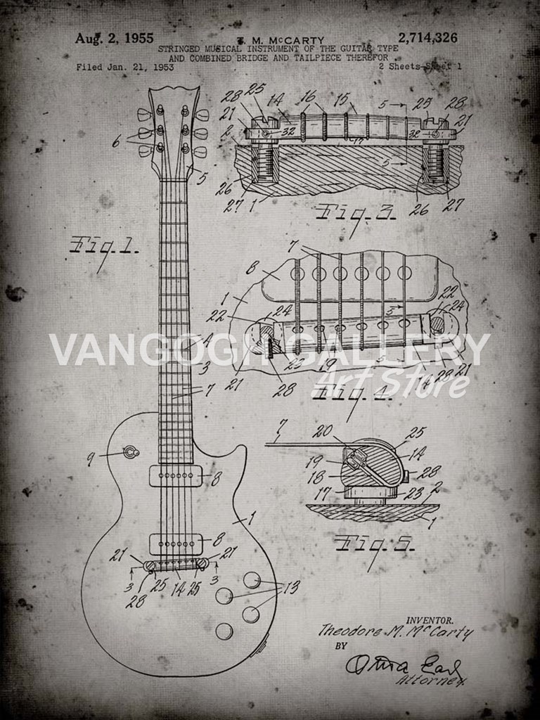 Guitar & Combined Bridge & Tailpiece Therefor Patent - Faded Grey - Cole Borders