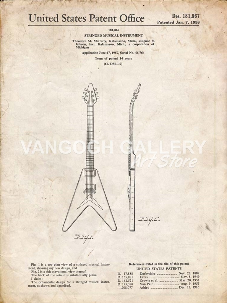 Stringed Musical Instrument Patent - Vintage Parchment - Cole Borders