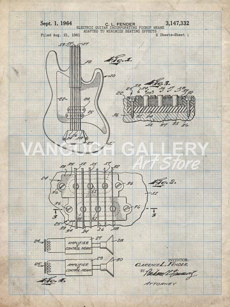 Title: Electric Guitar Patent - Antique Grid Parchment