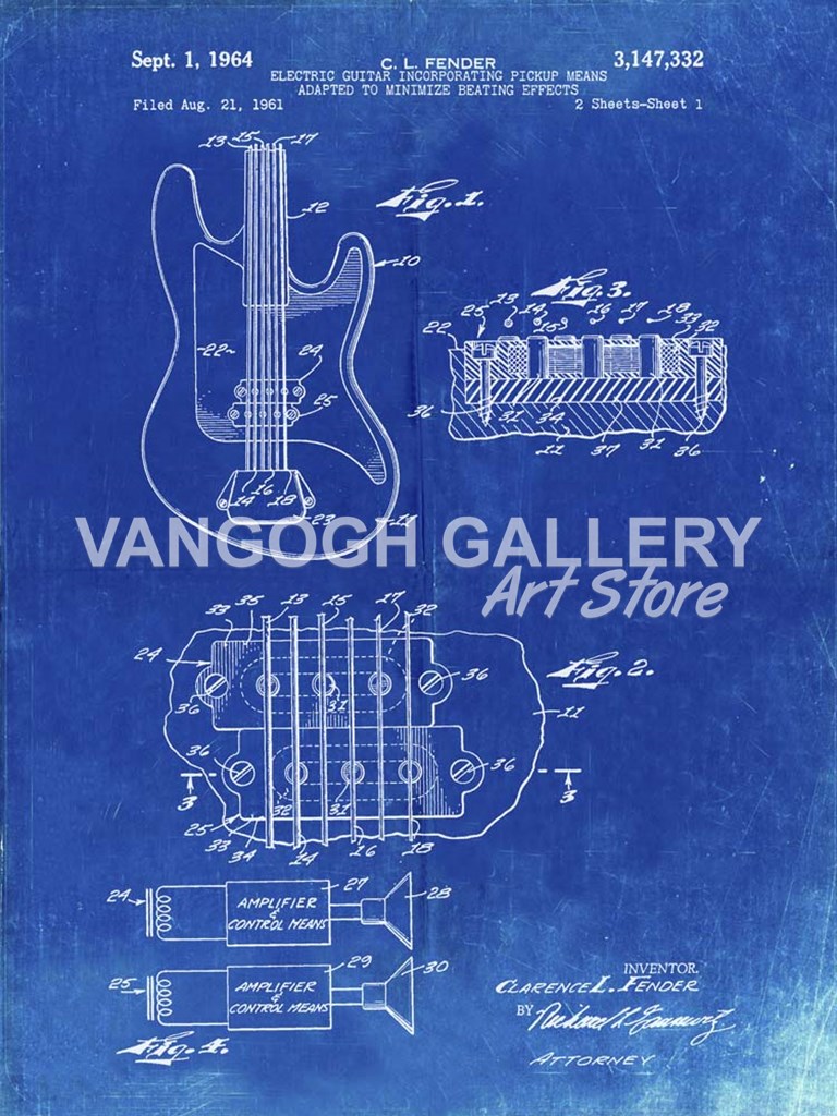 Title: Electric Guitar Patent - Faded Blueprint