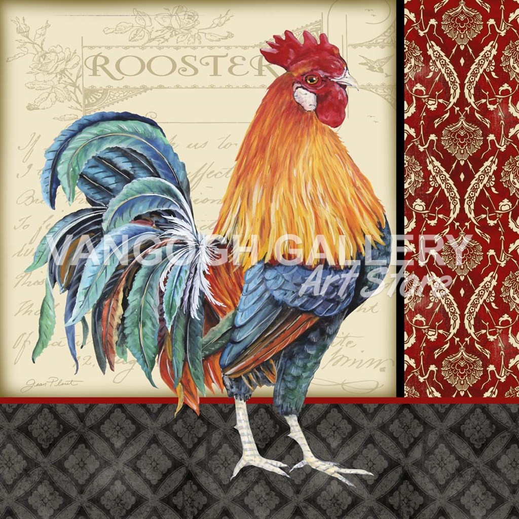 Damask Rooster - D by Jean Plout art print