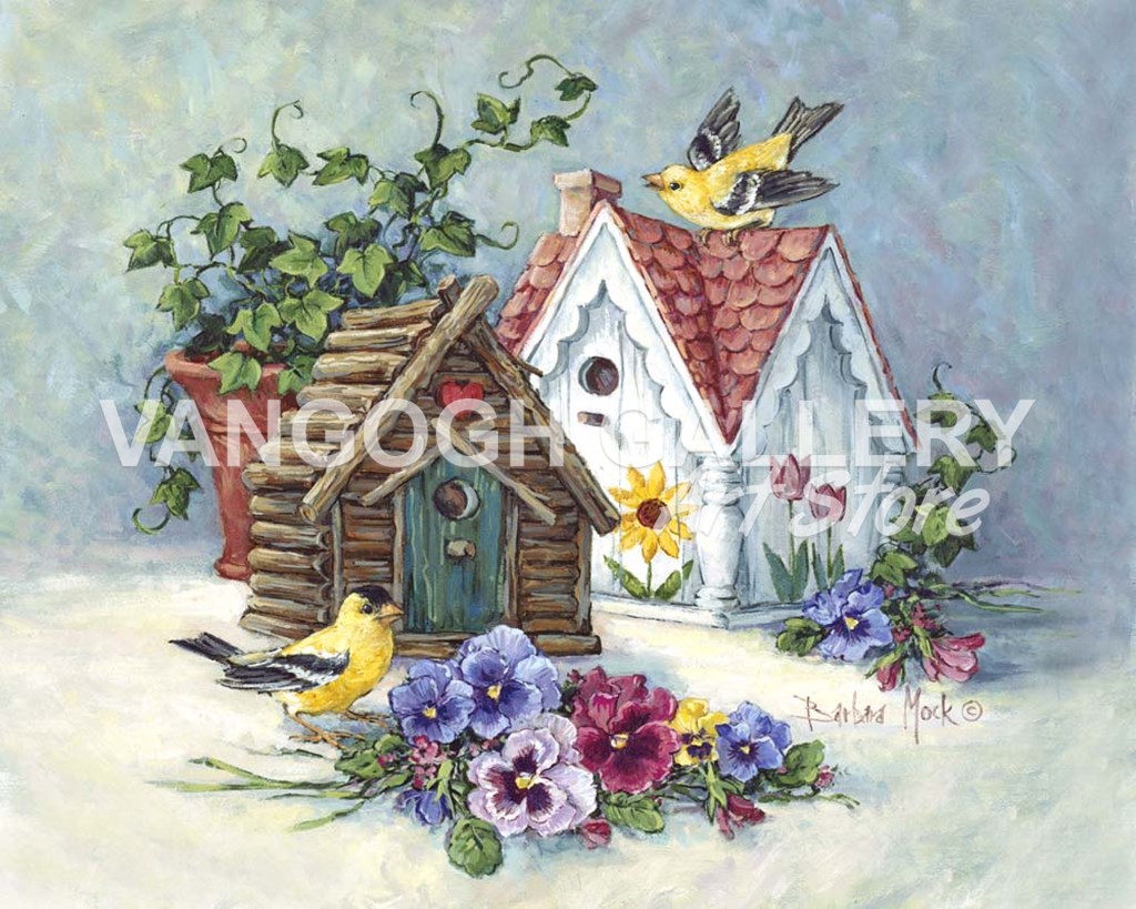 Goldfinch Birdhouses by Barbara Mock art print