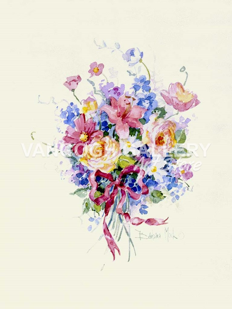 Title: Watercolor Bouquet, Pink Ribbon