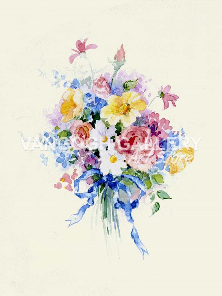 Title: Watercolor Bouquet, Blue Ribbon